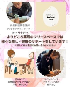 よりどころ薬局では癒しや健康のためにシェアスペースを様々な方にご利用いただいております。